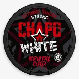 Experience CHAPO Brutal Cold Danger Strong (51mg), ultra-strong tobacco-free nicotine pouches (snus) that deliver a ferocious icy mint blast with rapid, long-lasting release in discreet, smoke-free, spit-free portions—perfect for seasoned users seeking maximum intensity and relentless freshness.