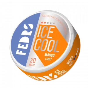 Experience a tropical chill with FEDRS Ice Cool Mango (20mg) nicotine pouches—tobacco-free snus delivering a strong 20 mg hit with juicy ripe mango flavor and an invigorating icy finish in slim, discreet portions for long-lasting, clean enjoyment.