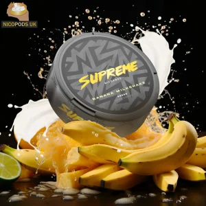 Experience Supreme Banana Milkshake (100mg) snus—ultra-strong, tobacco-free nicotine pouches that deliver a rich, creamy banana milkshake flavor with fast release, long-lasting taste, and discreet all-day satisfaction for seasoned users seeking a powerful impact.