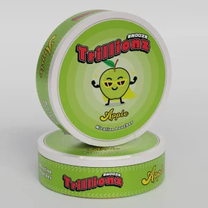Savor the crisp, juicy taste of Trillionz Apple (100mg) tobacco-free snus nicotine pouches—high-strength, discreet, and spit-free with long-lasting flavor and freshness for a bold, satisfying apple kick anytime.